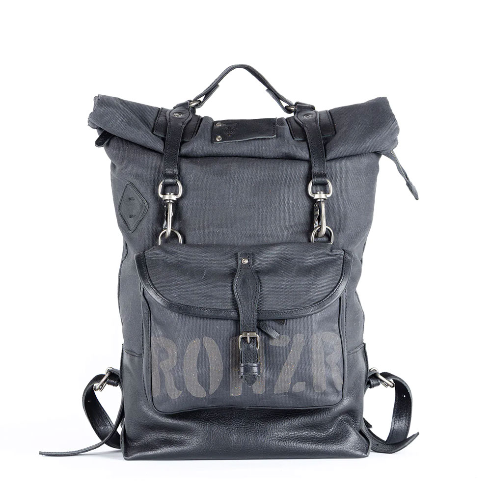 Canvas acabado vintage, colores negro, caqui, olivo y gris oxford. Piel 100% Bovino. Forro 100% algodón. Herraje Metálico reforzado y cierre ykk.