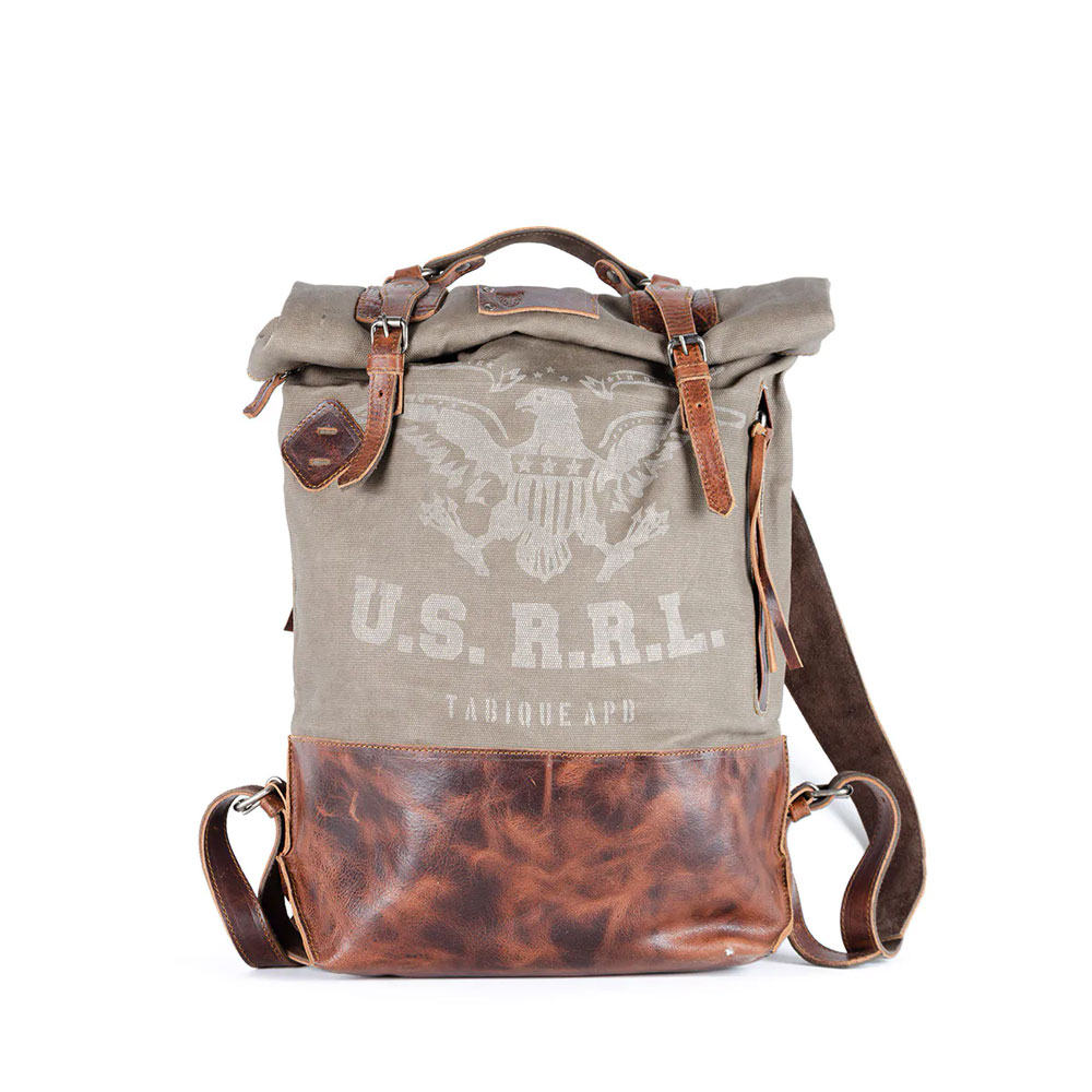Canvas acabado vintage, colores negro, caqui, olivo y gris oxford. Piel 100% Bovino. Forro 100% algodón. Herraje Metálico reforzado y cierre ykk.
