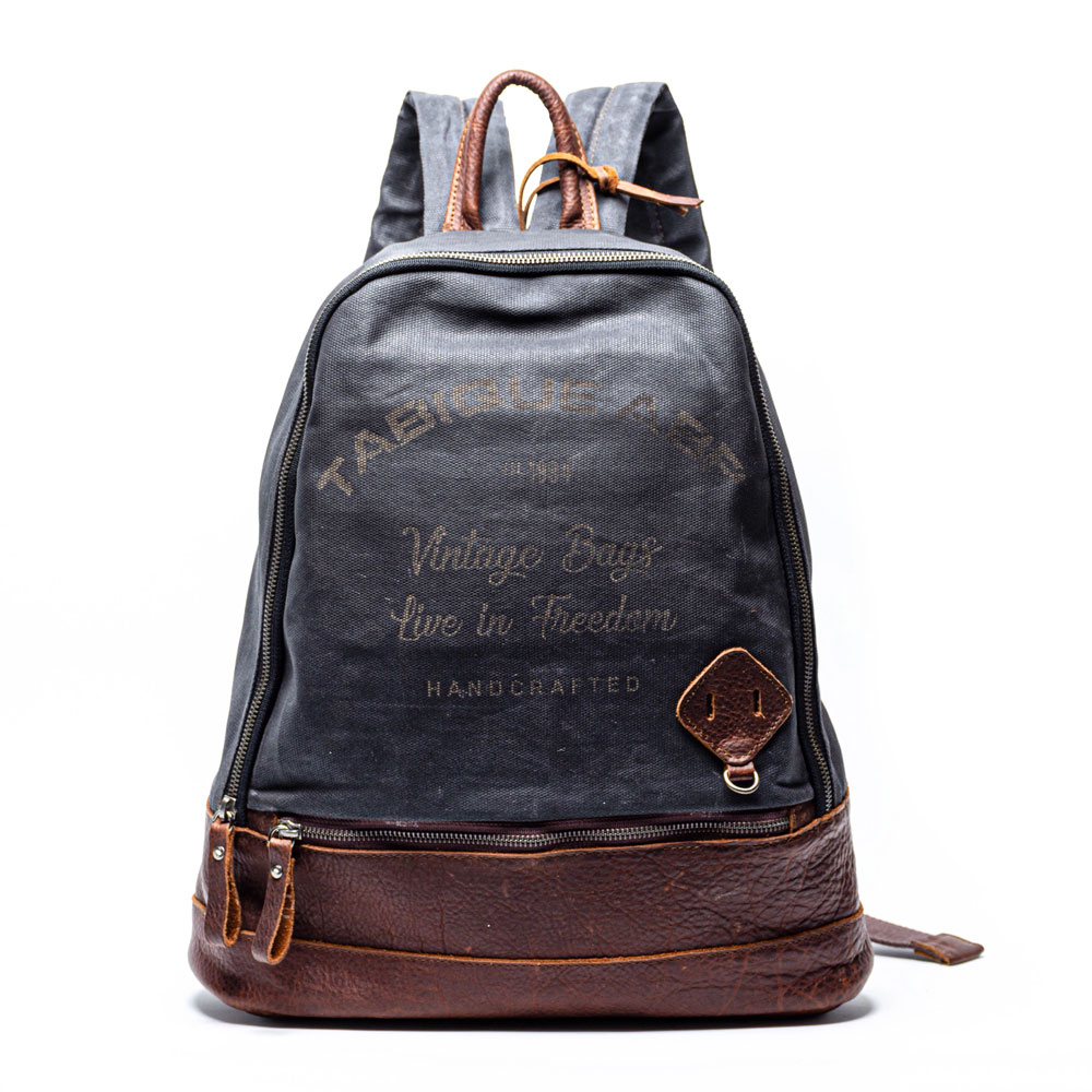 Canvas acabado vintage, colores negro, ladrillo, caqui, olivo y gris oxford. Piel 100% Bovino. Forro 100% algodón. Herraje Metálico reforzado y cierre ykk.